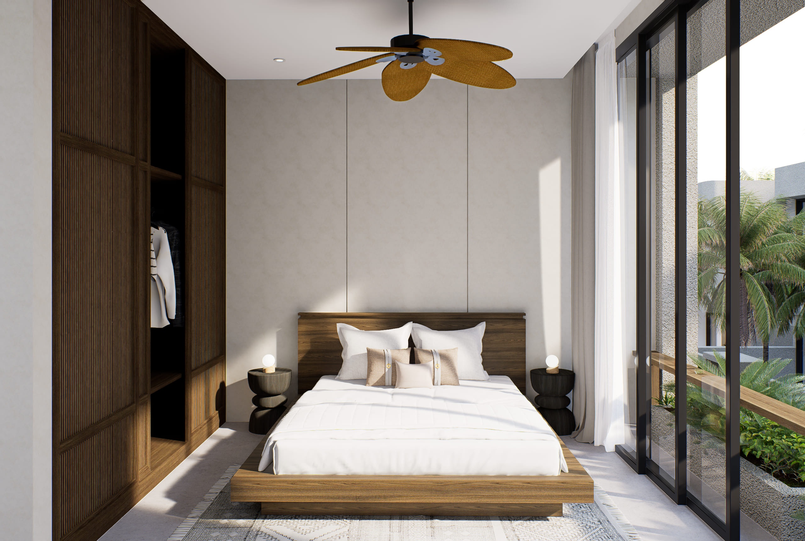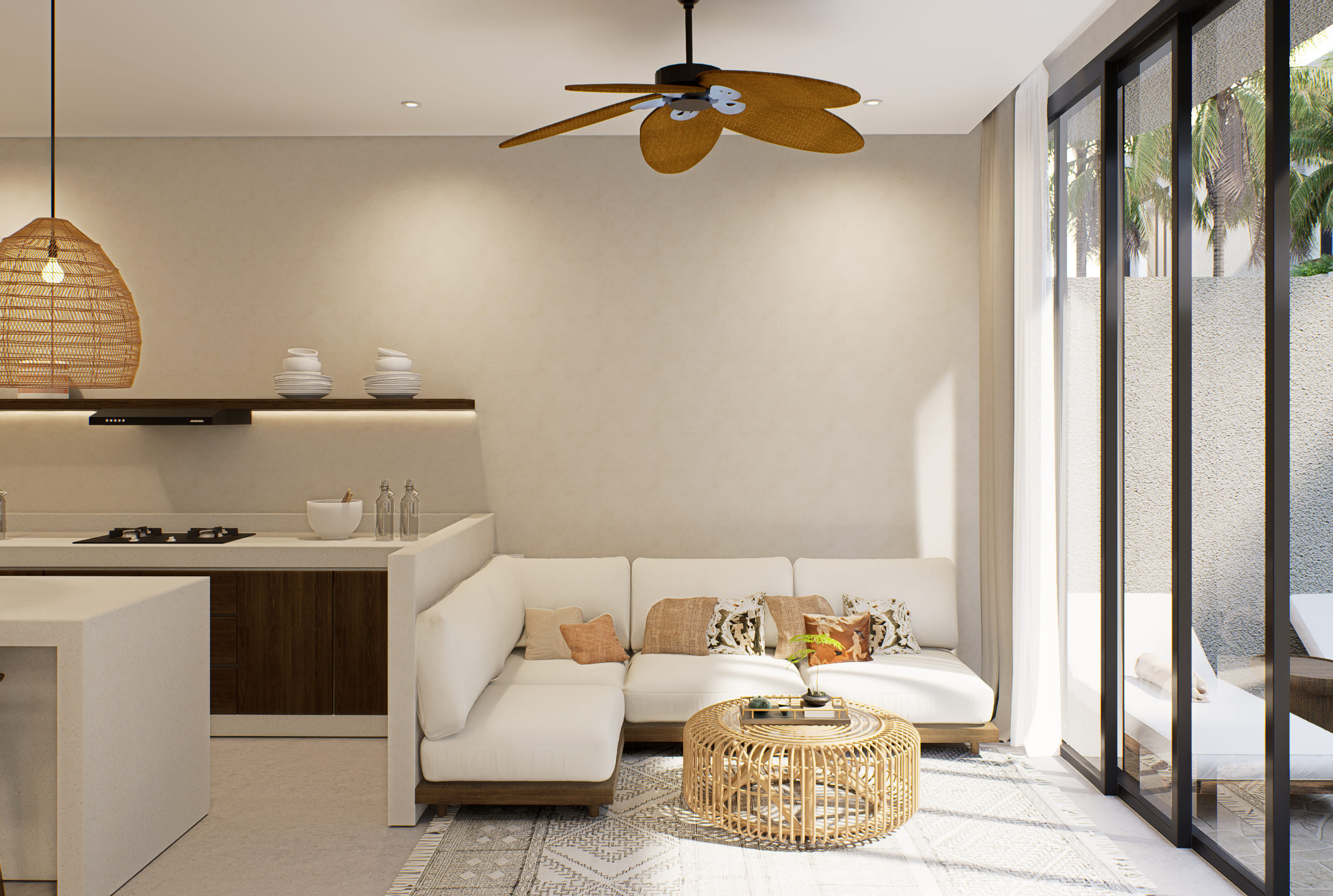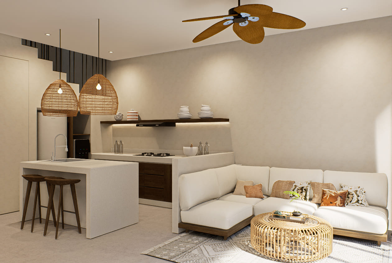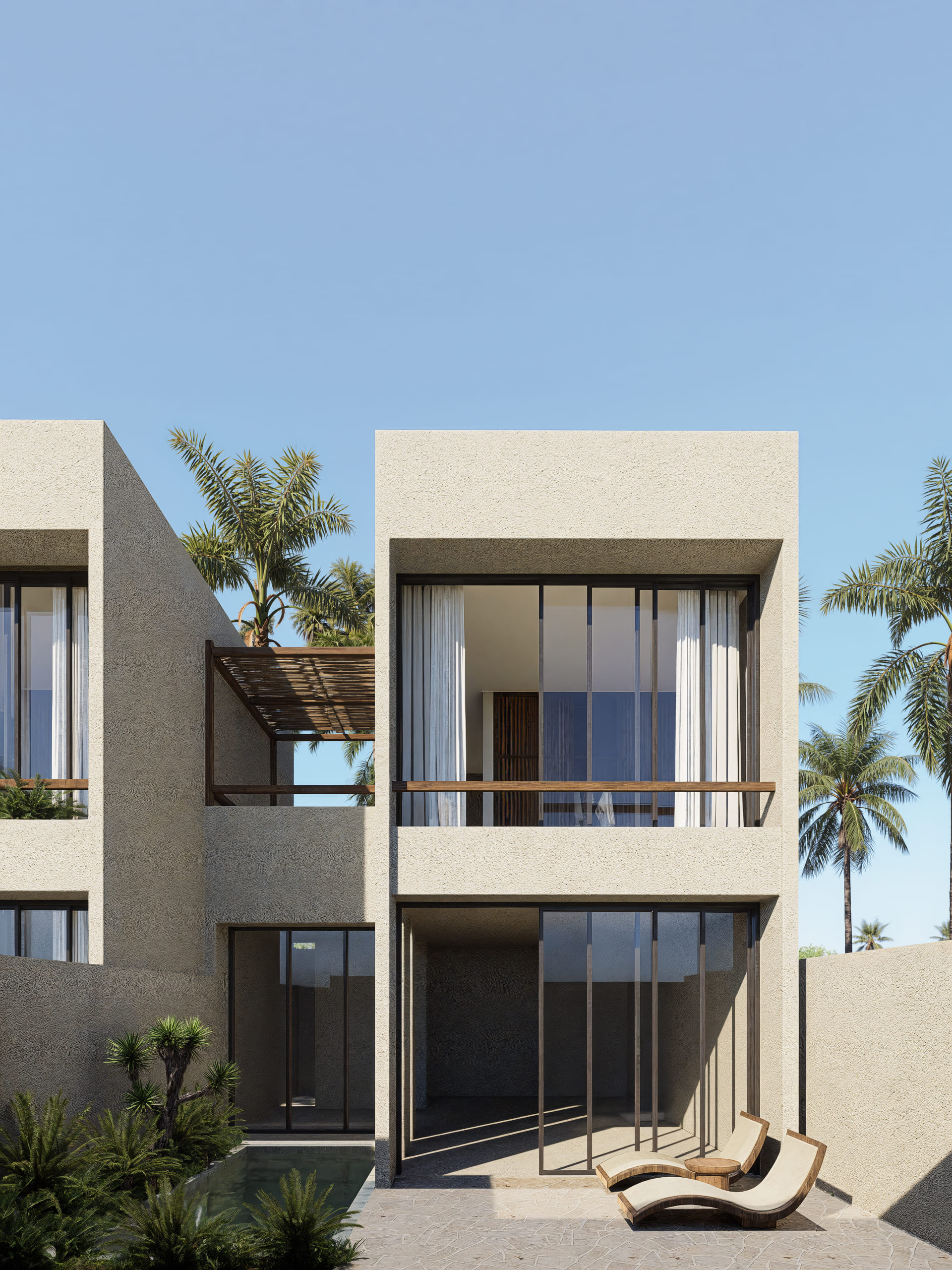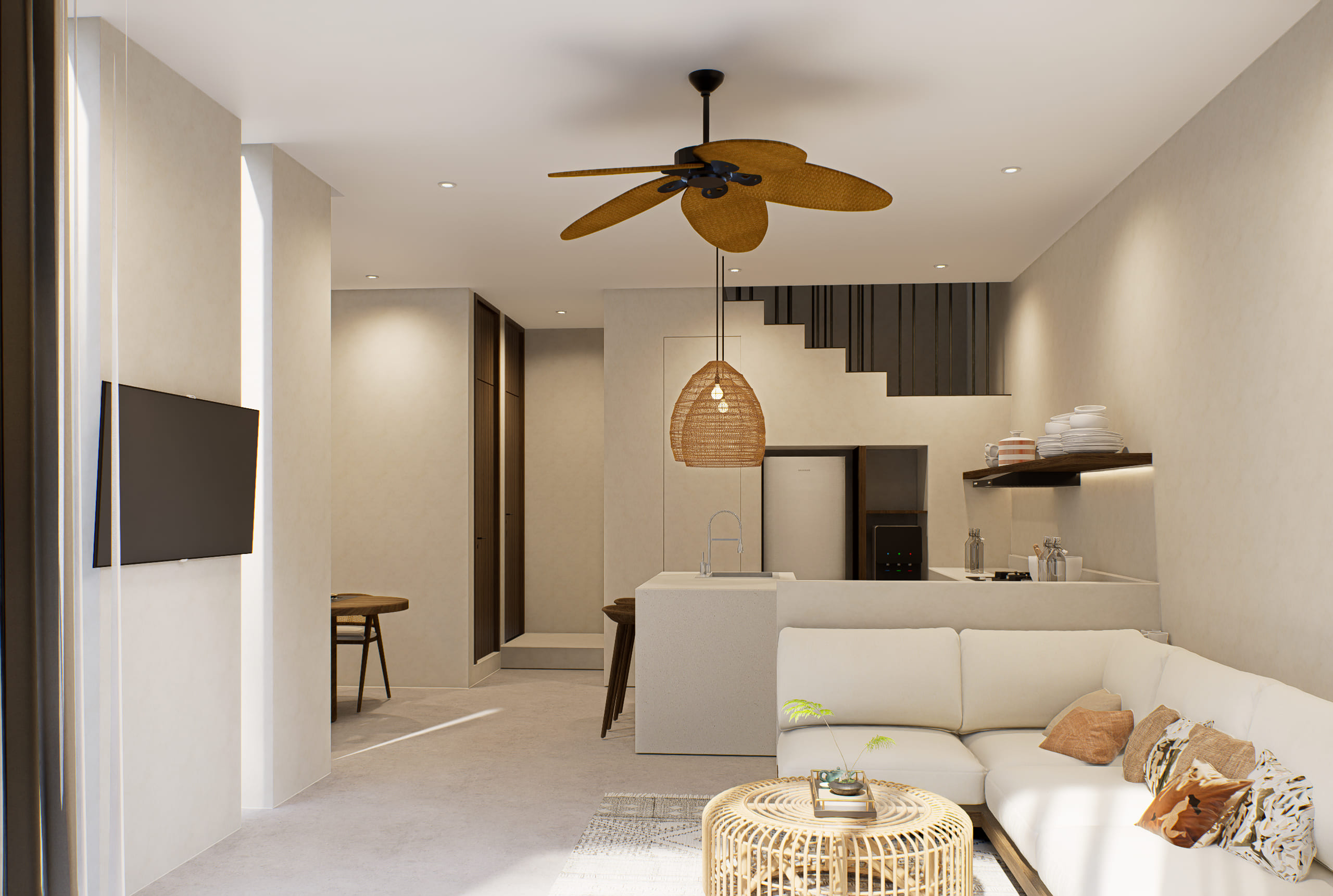 Designed with a modern tropical flair, each 1-bedroom villa blends comfort and style, ideal for those seeking luxury and laid-back island living. Enjoy a spacious bedroom with an en-suite bathroom, an inviting living area, a fully-equipped kitchen, and a cozy dining space. Outside, your private sanctuary awaits, complete with a swimming pool, sun deck, tropical garden, and secure parking.
